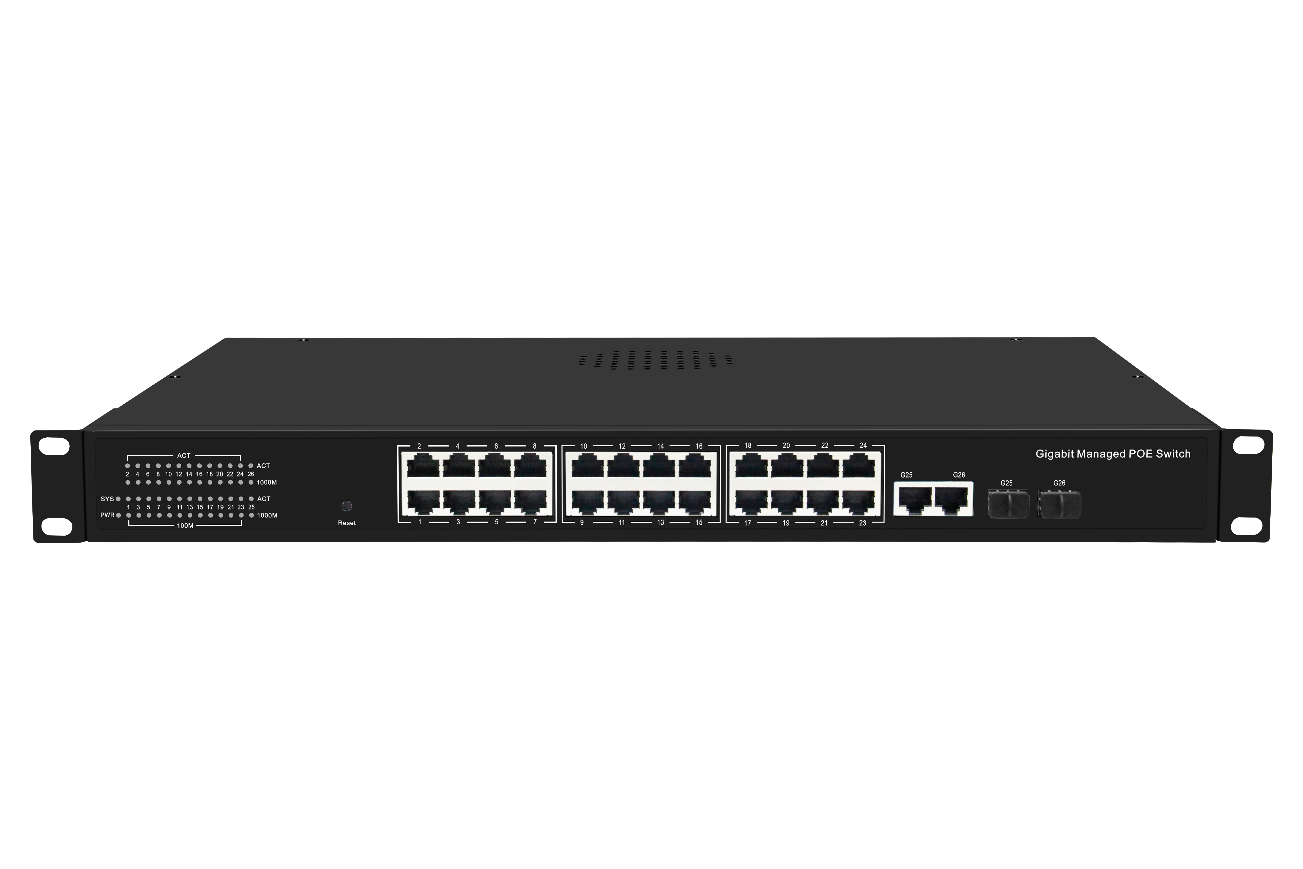 24個千兆PoE網口+8個千兆光電復用SFP口+ 4個萬兆SFP光口+1個Console網管型商業級POE交換機