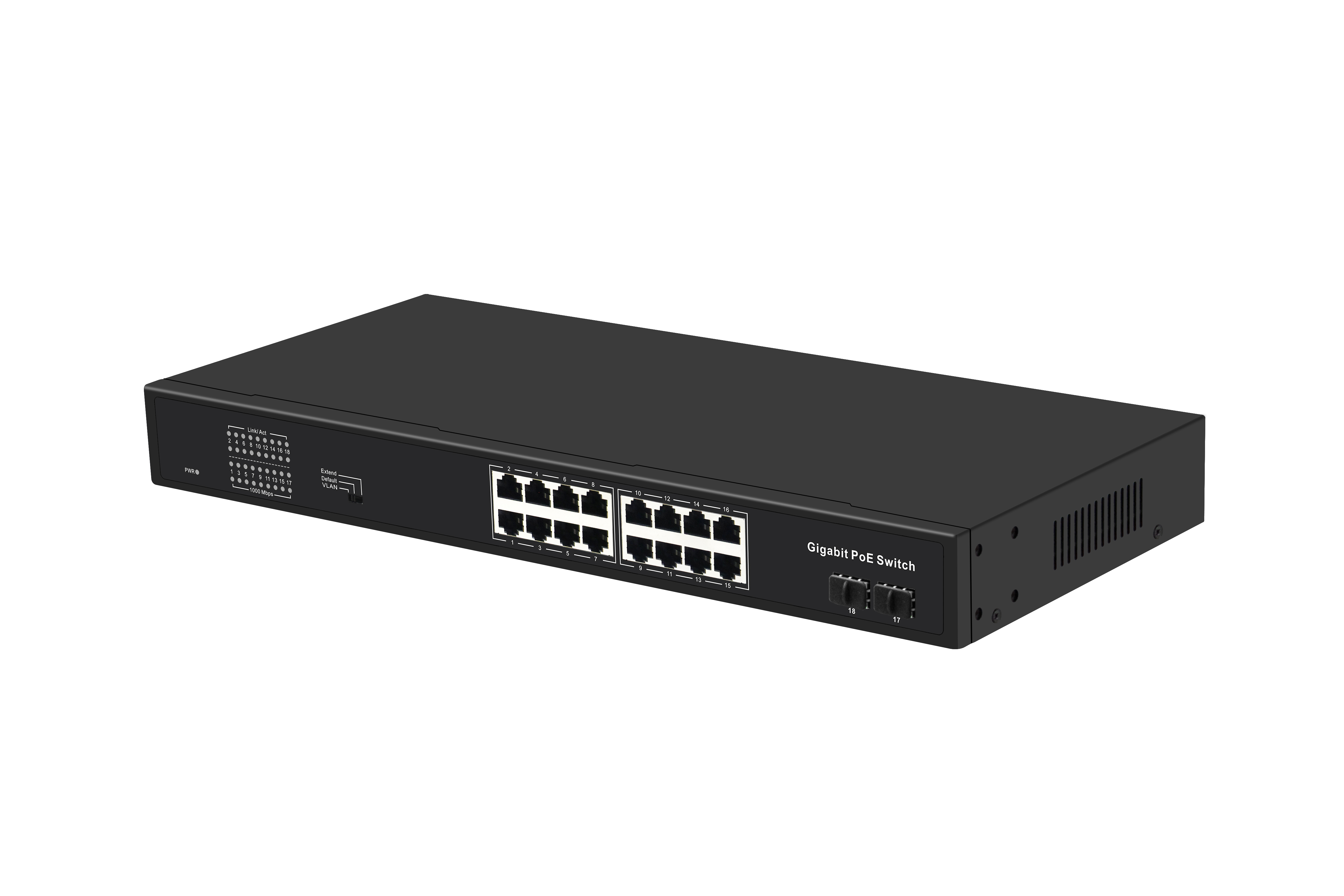 | 指示燈 | PWR(電源指示),1-18 ACT(鏈路&數(shù)據(jù)), 1-18 1000M(鏈路速率) |