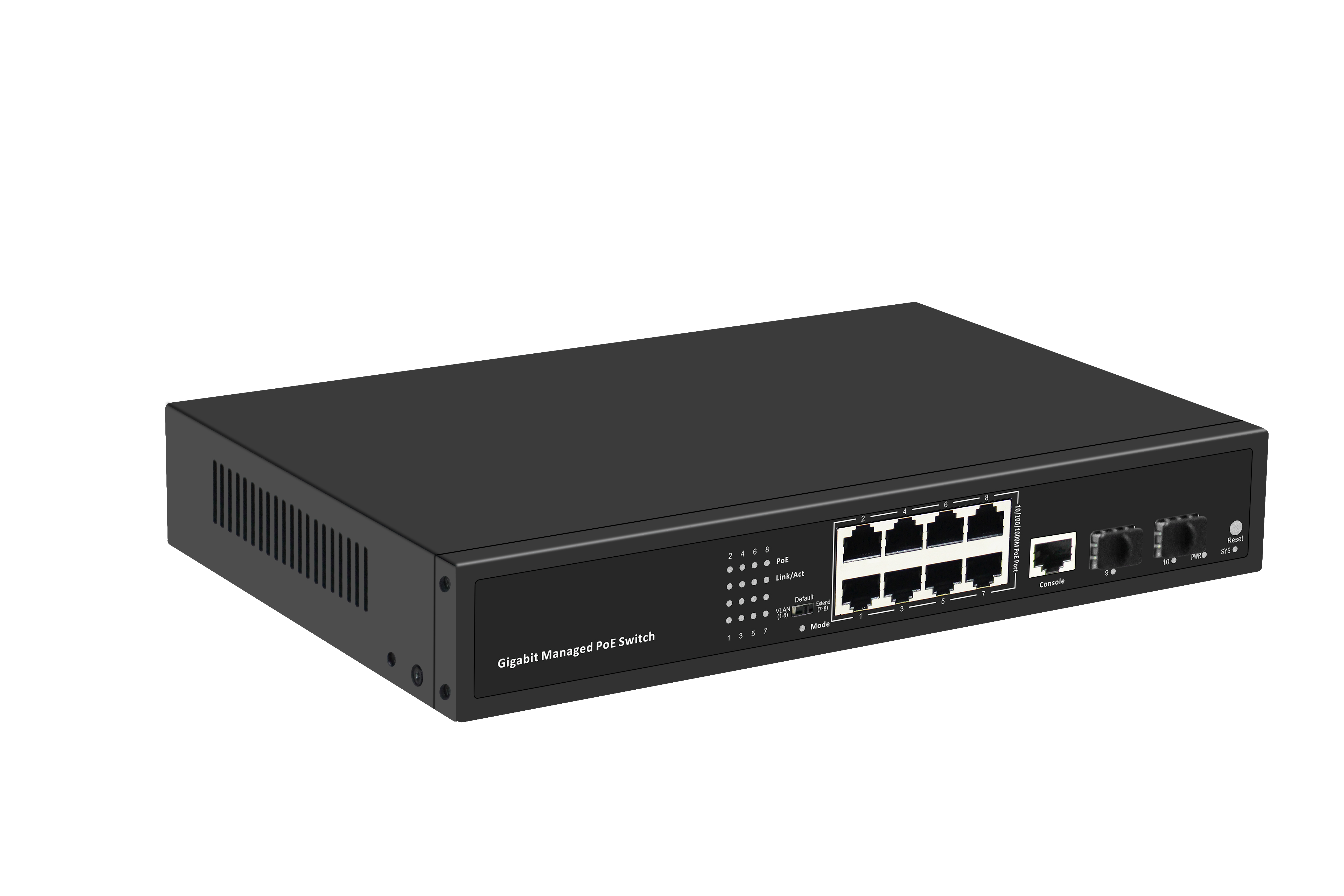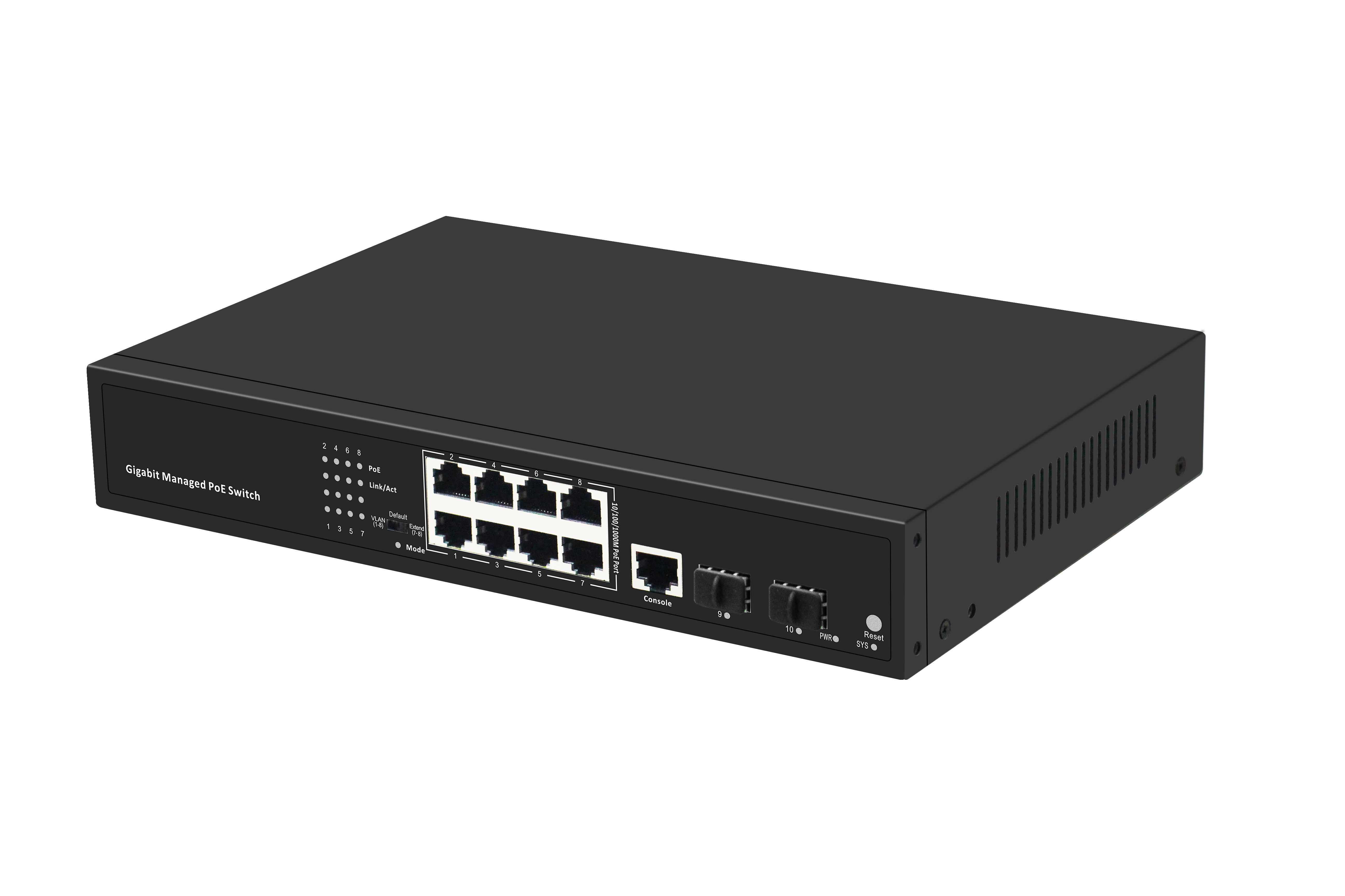 端口定義8個千兆PoE網(wǎng)口+2個千兆SFP口+1個管理口