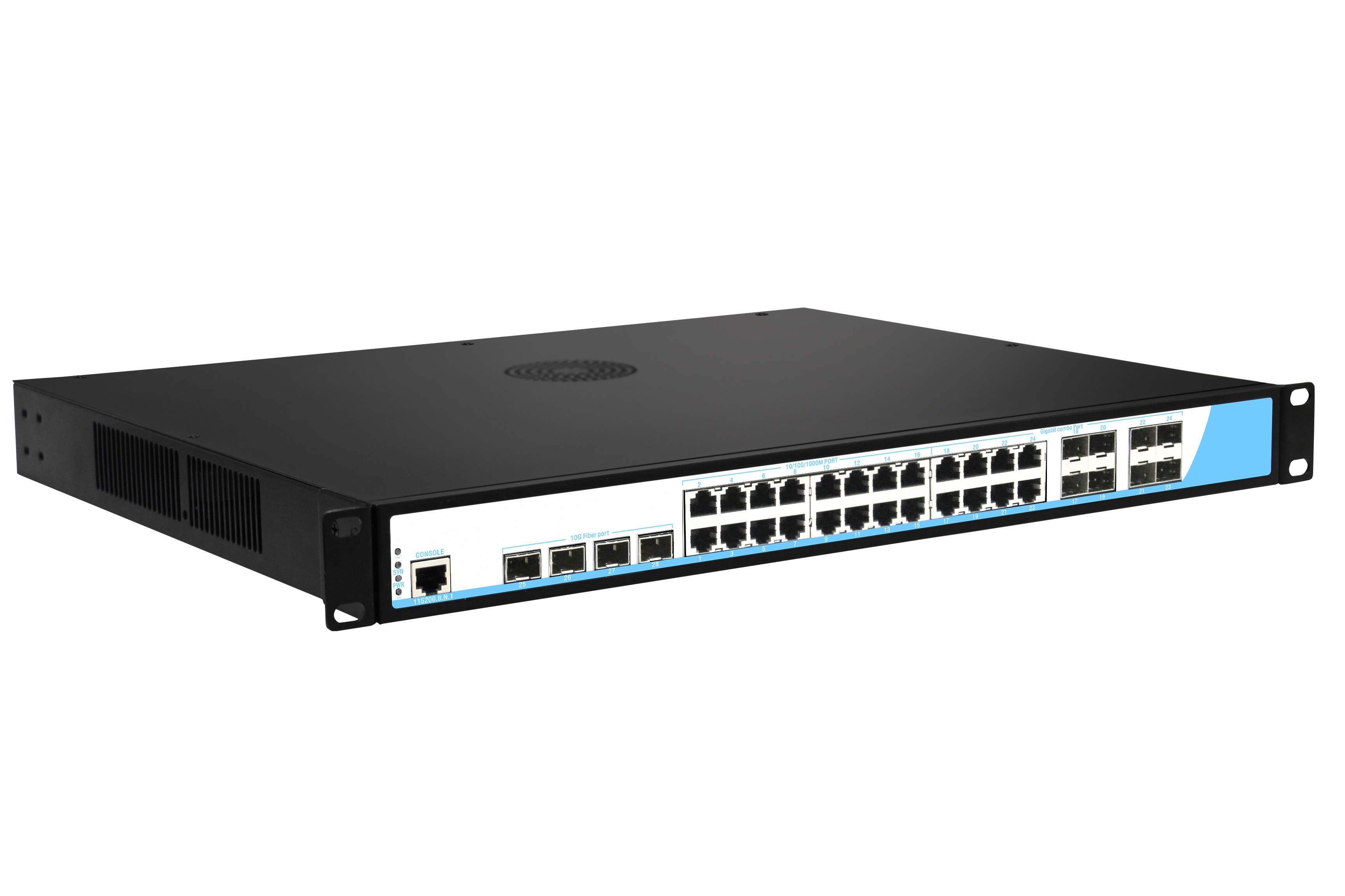 24個千兆PoE網口+8個千兆光電復用SFP口+ 4個萬兆SFP光口+1個Console口