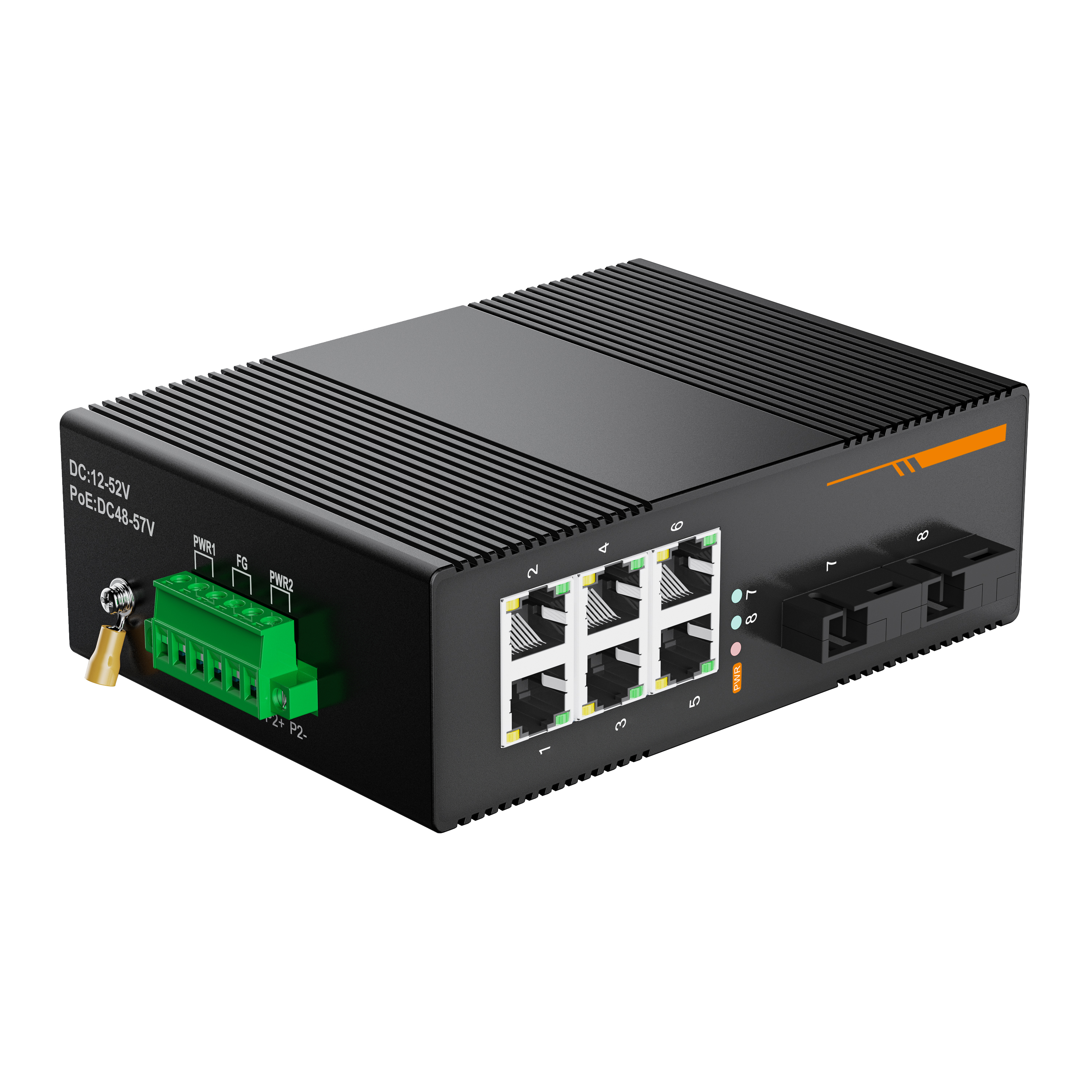 The industrial grade Ethernet switch supports 6 10/100Base-T (X) ports and 2 10/100Base-X optical ports, with 6 100 Mbps PoE ports and 2 100 Mbps FX optical ports. The product complies with FCC, CE, and RoHS standards. ZT-IE6050-6TP2FS-WA has a working temperature of -40 ℃ to 75 ℃, and its strong robustness can adapt to various harsh environments. It can also be conveniently placed in a compact control box. The installation characteristics of the guide rail, wide temperature operation, and the IP40 protection level shell and LED indicator light make the ZT-IE6050-6TP2FS-WA a plug and play industrial device, providing reliable and convenient solutions for users' Ethernet device networking. It can be widely used in industrial scenarios with Ethernet access such as comprehensive energy sources, smart transportation, smart factories, smart cities, and smart mines.