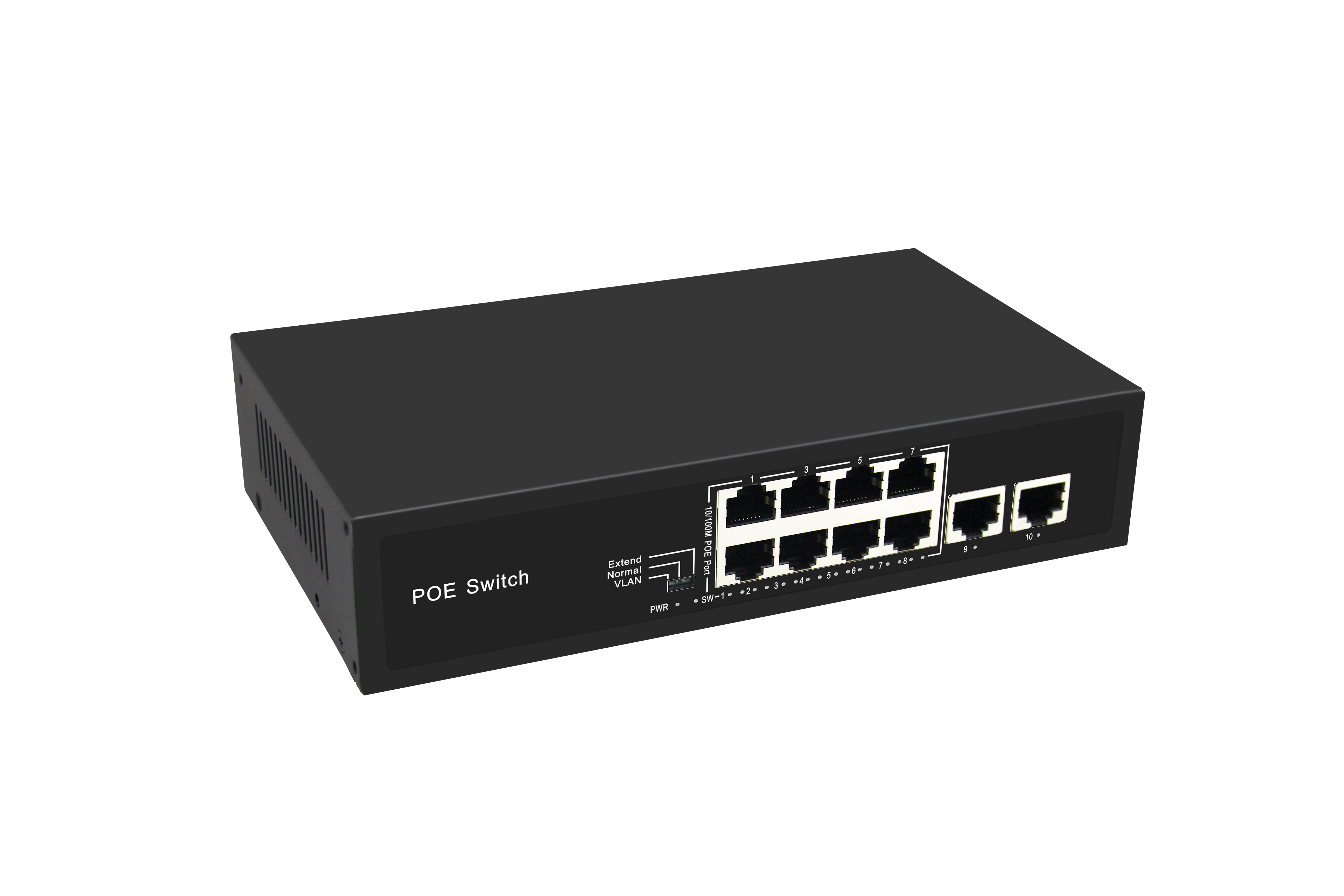 8 Gigabit PoE network ports+2 Gigabit uplink network ports+1 Gigabit SFP optical port