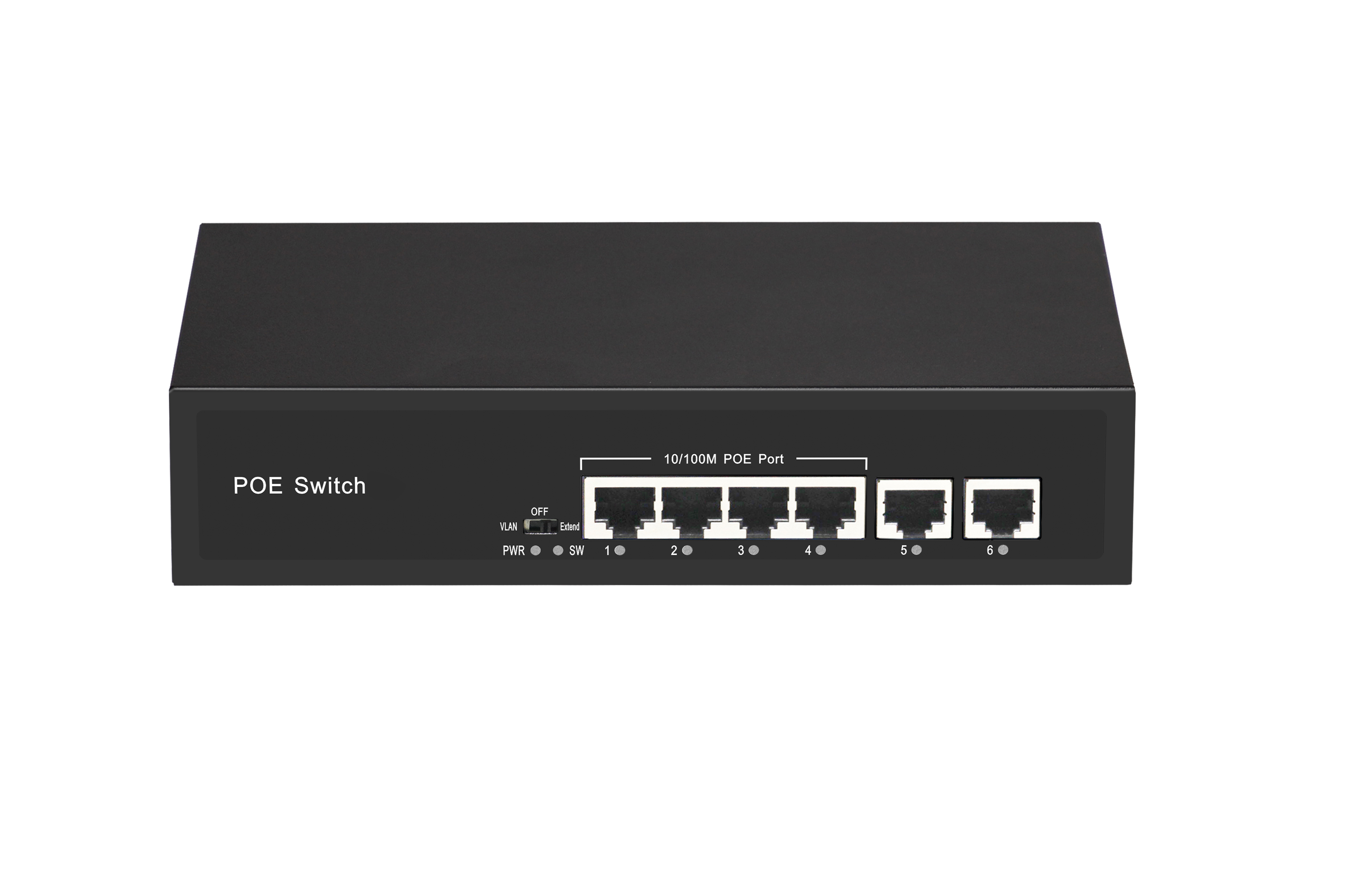4個(gè)百兆PoE電口+2個(gè)百兆上行網(wǎng)口非網(wǎng)管型商業(yè)級(jí)PoE交換機(jī)