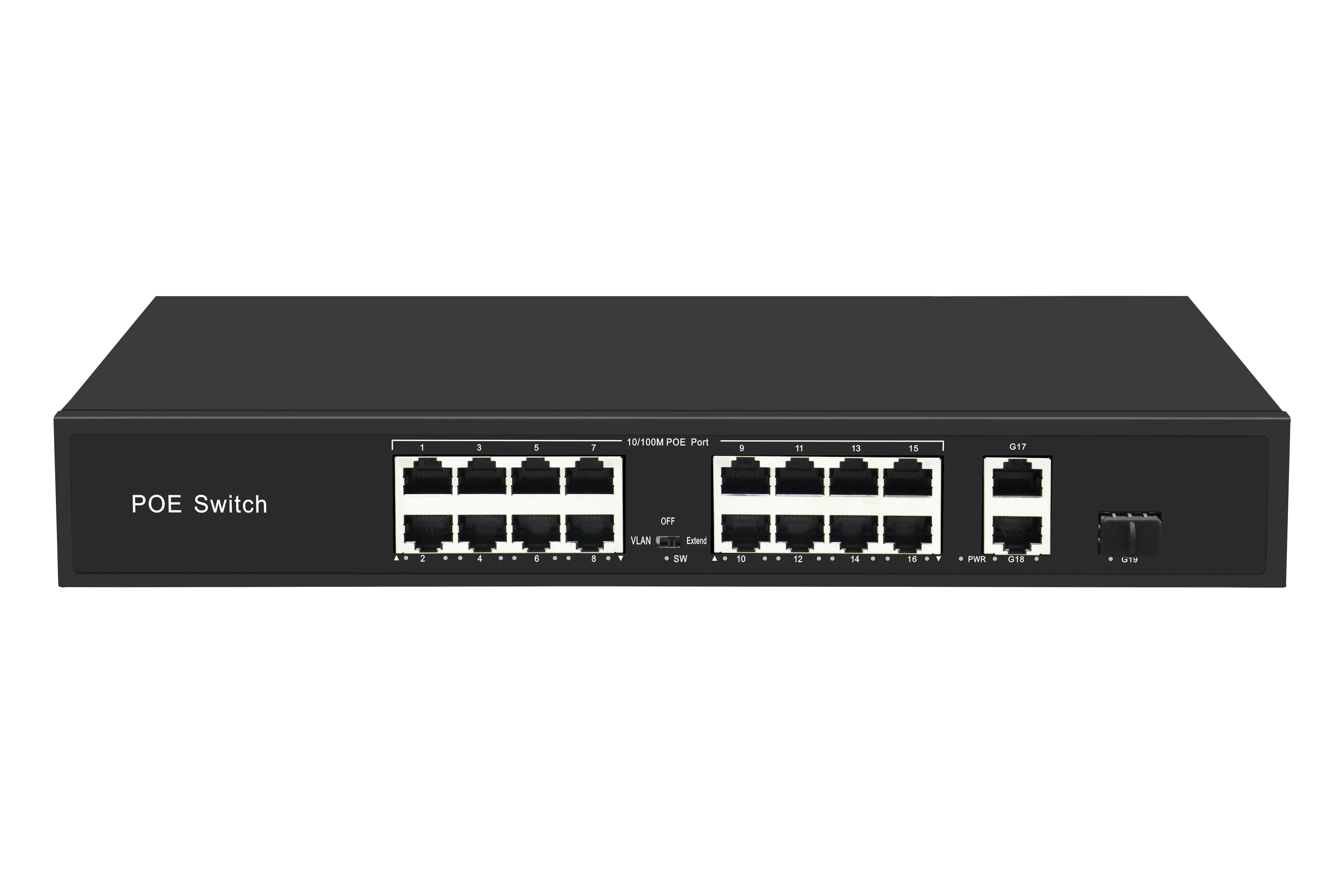16個(gè)百兆POE電口+2個(gè)千兆上行網(wǎng)口+1個(gè)千兆光口非網(wǎng)管PoE交換機(jī)